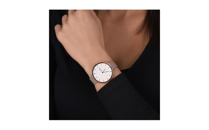 Als treuer Begleiter zu jedem Anlass erweist sich diese Damen-Armbanduhr von der Marke SKAGEN aus der Serie Gitte. Bequem tragen lässt sich die Uhr dank der Sicherheitsfaltschließe und dem feinmaschigen Mesh-Armband, das sich flexibel dem Handgelenk anpasst.
