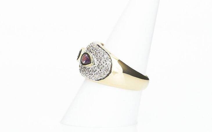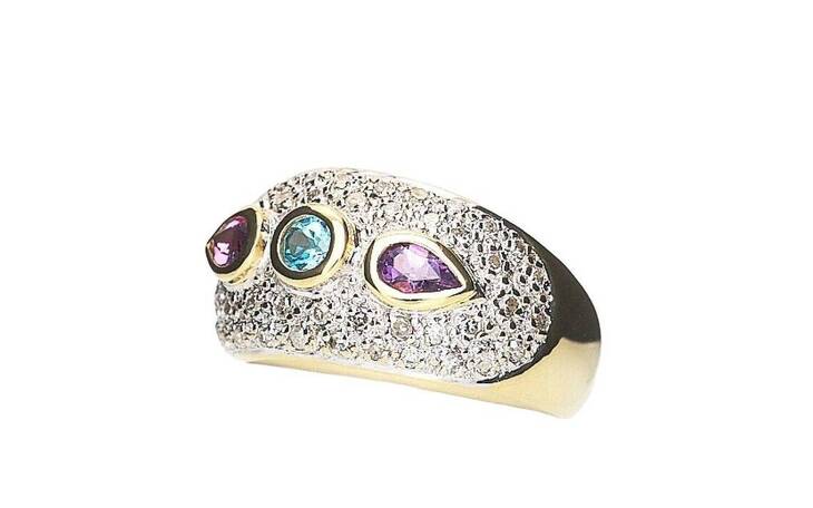 Damenring 585 Gelb- Weißgold mit Amethyst, Blautopas, Diamanten