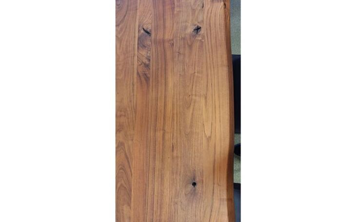Esstisch mit Nussbaumplatte und Edelstahlkufen