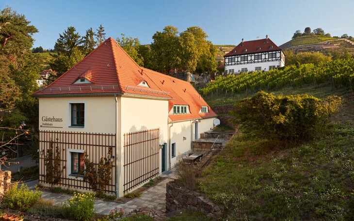 Auf den Wein folgt die Ruhe. Entspannen Sie in der Pension "Gästehaus Hoflößnitz". Unterhalb des historischen Ensembles der Hoflößnitz befindet sich inmitten der Weinberge ein Winzerhaus, dessen Ursprünge bis in das 17. Jahrhundert zurückgehen. In dem liebevoll restaurierten Gebäude können Sie sich über Nacht wohlfühlen. Denn auf den Wein folgt die Ruhe, wusste schon Ovid. Die Nichtraucher-Pension, die im gehobenen Landhausstil ausgebaut wurde, bietet unseren Gästen alle Annehmlichkeiten mit großem Komfort. Genießen Sie den Blick direkt in die Weinberge oder die himmlische Ruhe beim Verweilen auf der Terrasse!