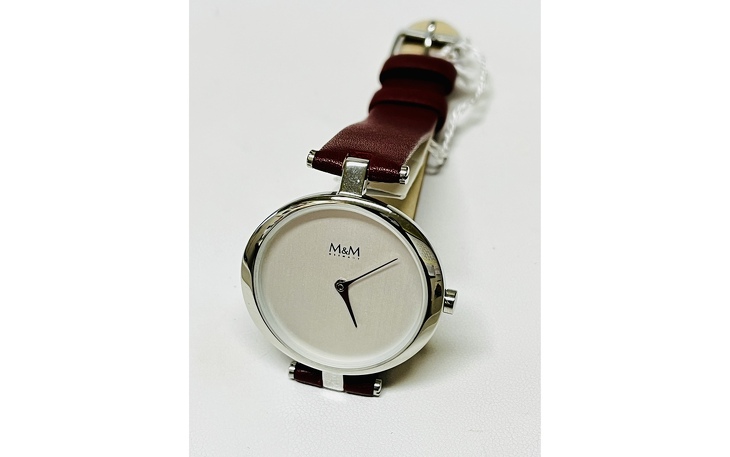 Moderne Damenuhr mit rotem Lederband und Edelstahlgehäuse