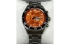 Sportliche Multifunktionsuhr mit orangefarbenen Zifferblatt.