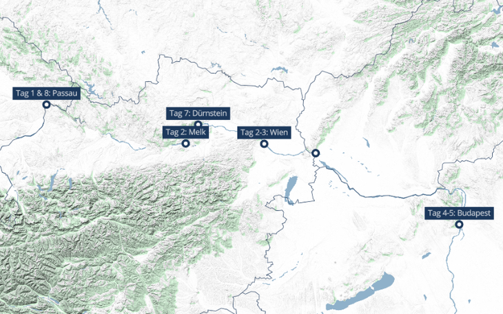 Routenhighlights: Melk, Wien, Budapest, Bratislava, Dürnstein