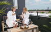 Erleben Sie gemeinsam 5 Stunden Entspannung im exklusiven Spa-Bereich in der 6. Etage mit Outdoor Sauna. Genießen Sie je zwei Aromaölmassagen und klassische Gesichtsbehandlungen sowie luxuriöse Saunapakete mit Bademantel, Handtüchern und Saunaschuhen. Kulinarisch verwöhnen wir Sie mit einer Sushi-Variation (vegetarisch oder vegan), einer Flasche Champagner, Orangensaft, Obstteller und Nussvariation. Frisch gefiltertes Wasser steht während des gesamten Aufenthalts zur Verfügung.