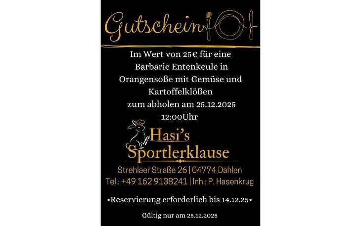 Festliche Entenkeule in Orangensoße mit Gemüse und Kartoffelklößen zum Abholen am 25.12.2025 um 12:00 Uhr in Hasi´s Sportlerklause!