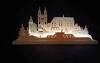 Lichterbogen besteht aus drei Pappel Sperrholzplatten auf einem Fichtenbrett, hinterleuchtet mit einem dimmbaren LED Streifen