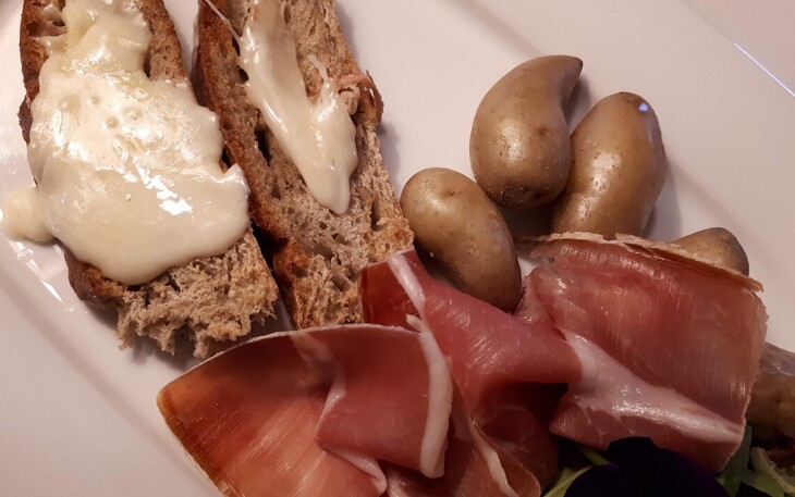 - 2-mal Raclette mit Salat, warmen Kartöffelchen, Bayonner Schinken und französischer Salami