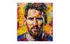Das Werk kombiniert realistische Gesichtszüge mit expressiven Farbströmen – Gelb, Rot, Blau und Orange tanzen über die Leinwand wie die Bewegungen des argentinischen Superstars auf dem Spielfeld. Die dynamischen Pinselstriche verleihen dem Bild eine fast rhythmische Struktur, als würde der Ball gerade rollen, das Stadion toben, und Messi – wie so oft – den Moment beherrschen.