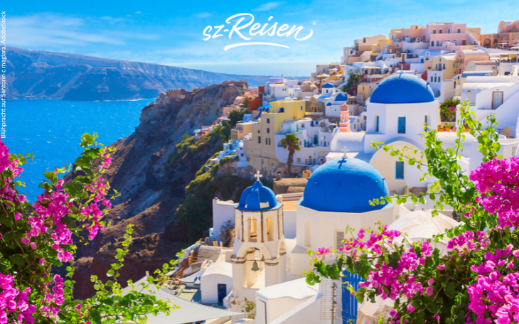 - Direktflug mit renommierter Fluggesellschaft nach Santorin und zurück in der Economy Class